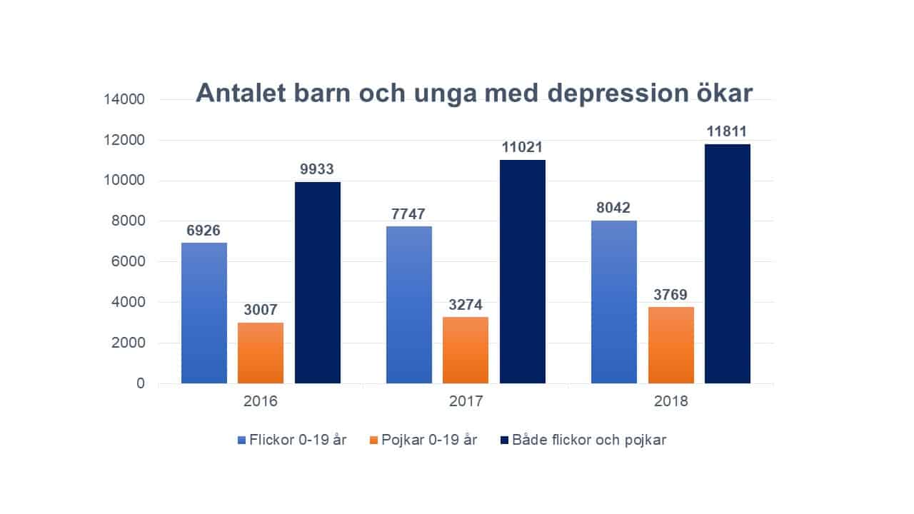Antalet barn och unga som är deprimerade har ökat de senaste åren och det är vanligare hos flickor